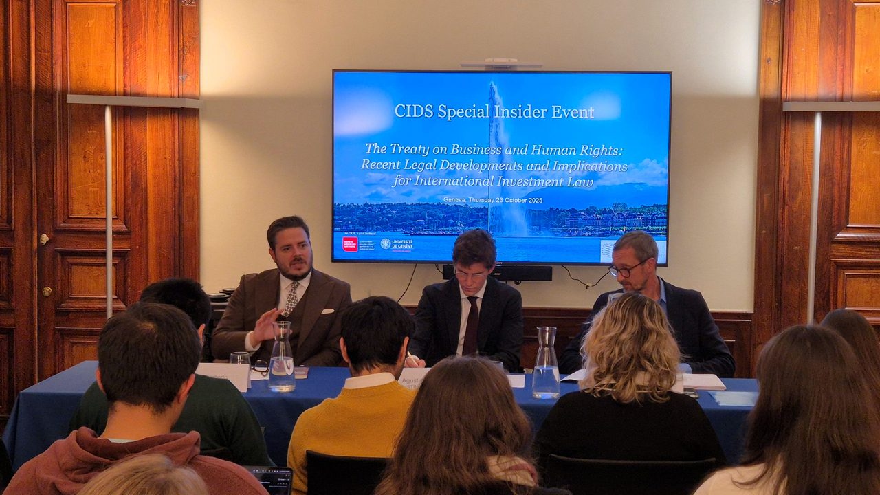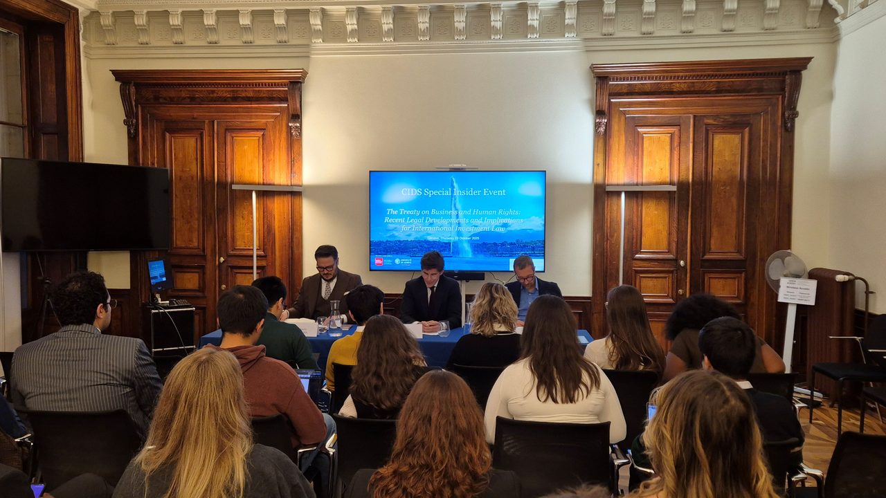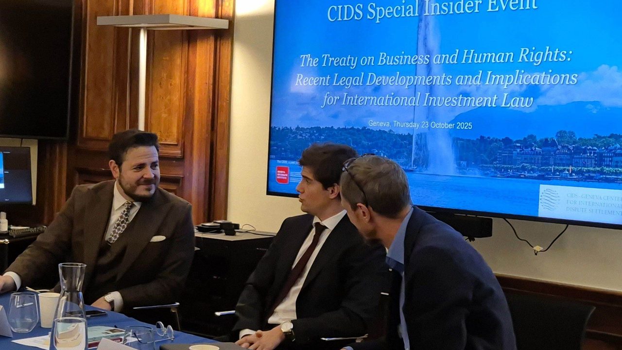 On the evening of 23 October 2025, CIDS hosted a closed-door expert dialogue at Villa Moynier (Cassese Room) titled "The Treaty on Business and Human Rights: Recent Legal Developments and Implications for International Investment Law." The event brought together leading voices from academia, diplomacy, and legal practice to critically examine the evolving treaty process and its intersections with international investment law, corporate accountability, and climate governance.